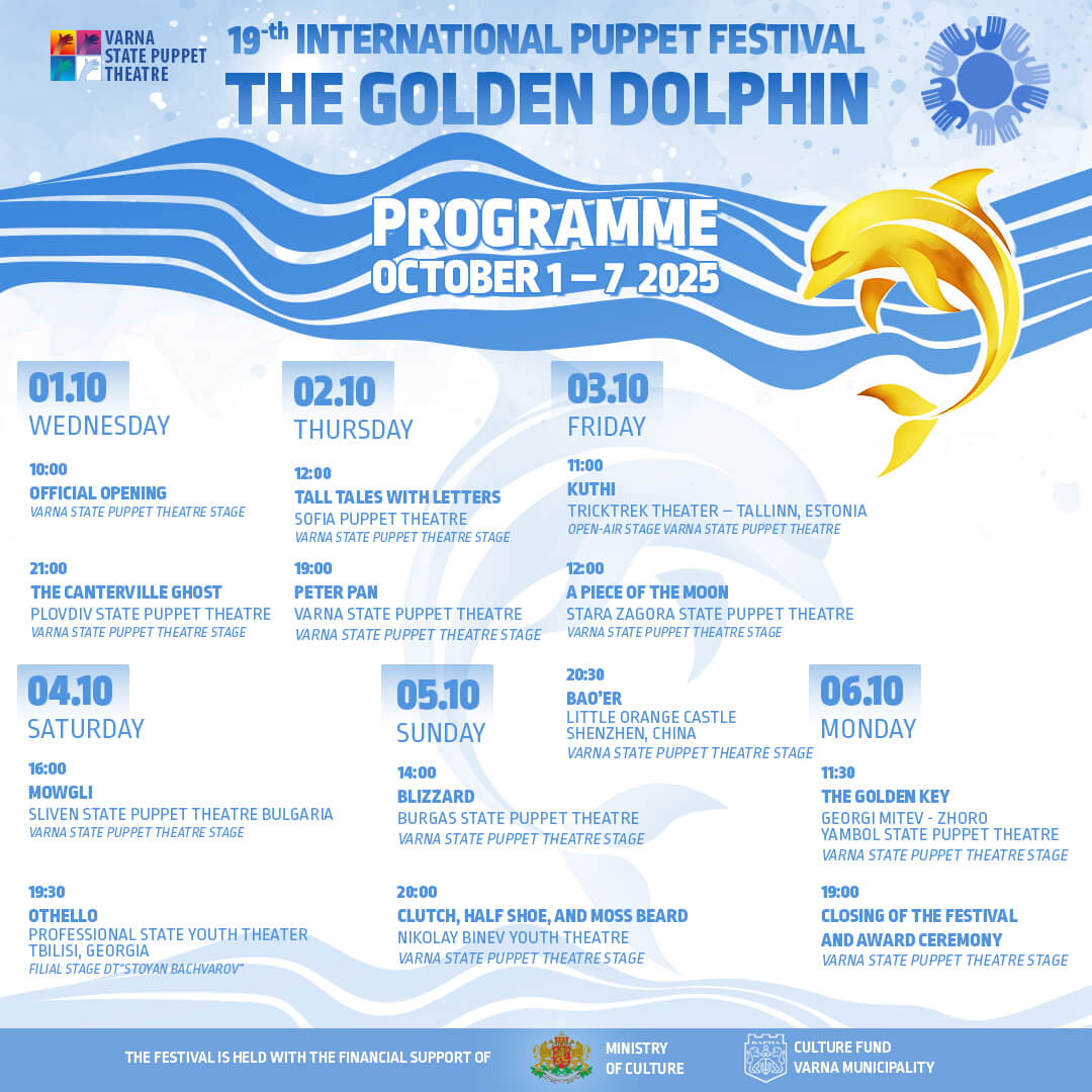 Browse through the entire week of fascinating events that make up the XIX International Puppet Festival Golden Dolphin’s programme. Want to have it safer in your pocket? Download: